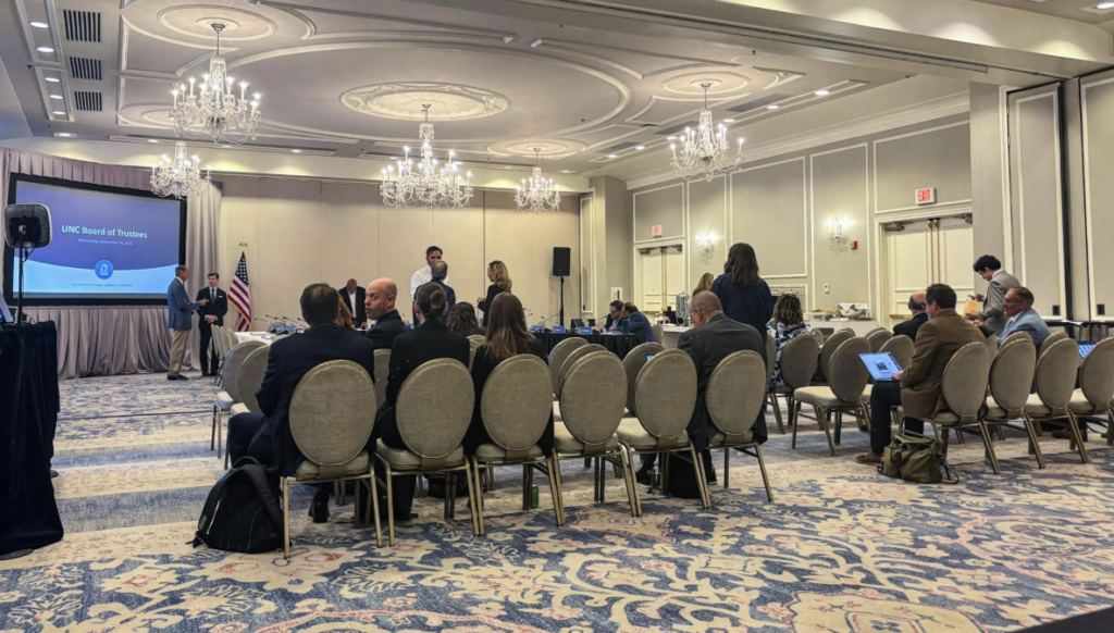 An article from September 2025 covering the UNC Board of Trustees, that held its September meeting to discuss university finances, organizational restructuring, tenure and campus safety. They also approved a resolution to make University policies more accessible. Photo by Regan Butler